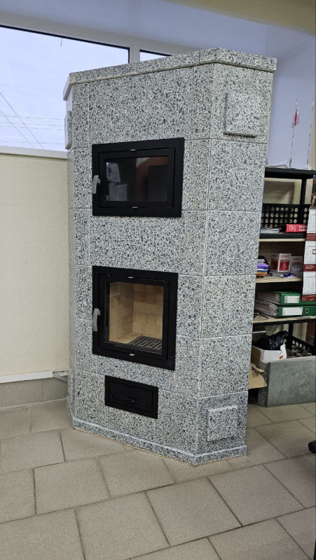 Кинерма экотальк (угловая теплоёмкая печь-камин с духовкой)